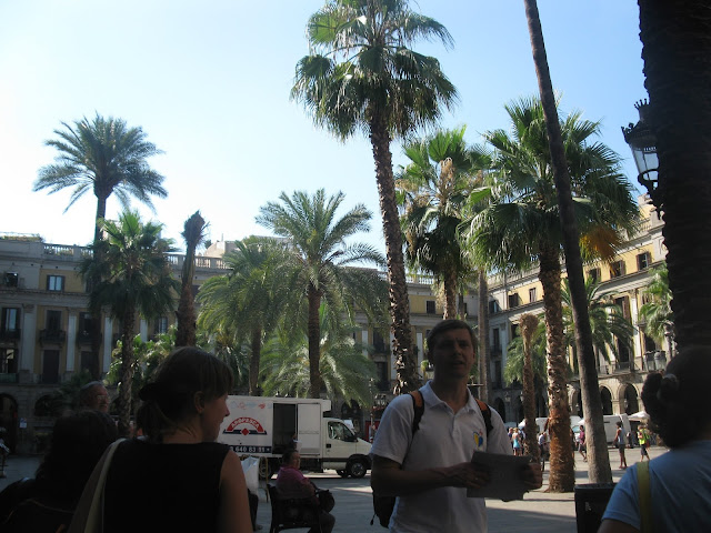 Після відвідин собору ідемо на пляж. Отець Олександр каже, що це недалеко. Але півгодини пішки при такій спеці видалися нам вічністю. Хоча і подивитись було на що. Спершу ми вийшли на Королівську площу (исп. Plaza Real, кат. Plaça Reial), яка також розташована в Готичному кварталі...