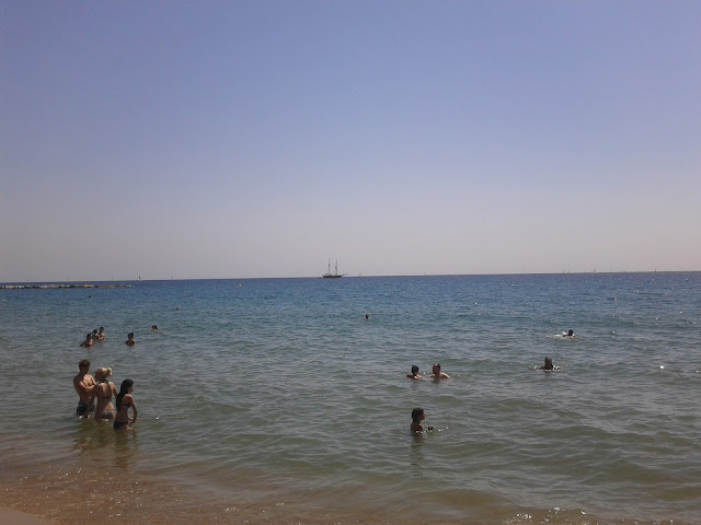 Нарешті ми на пляжі!!! Народу купа. Розкладаємо коцики, і лежимо. Ми на березі Середземного моря!