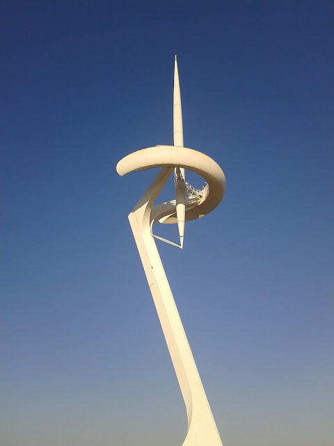 А далі ми входимо в Олімпійський парк, розташований на горі Монжуїк (кат. Montjuïc) і бачимо відому телевежу - символ Олімпіади 1992 року. Висота вежі становить 136 метрів. Взагалі-то це атлет, який тримає у руці факел з Олімпійським вогнем. А створила цю споруду уява архітектора Сантьяго Калатрави.
