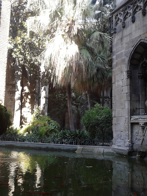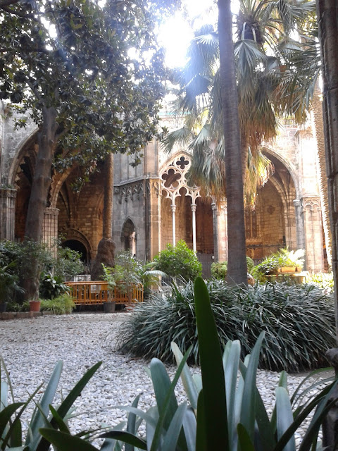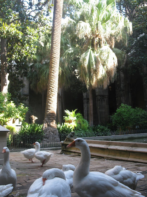 Всередині собору є внутрішній дворик, відкритий для відвідувачів. І тут, в одній із каплиць, живуть білі гуси. Вони символізують чистоту Святої Евлалії. Їй було 13 років, коли вона прийняла мученицьку смерть від рук язичників. Тому і гусей рівно 13.