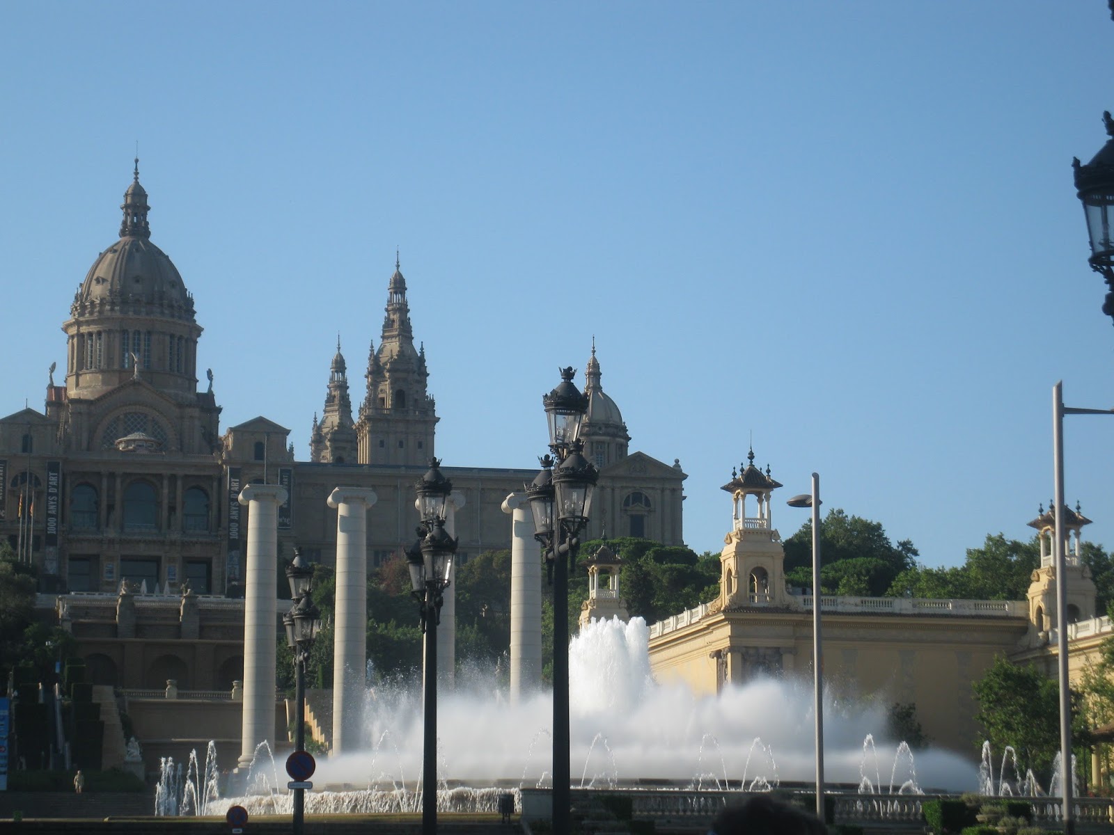 Виходимо на площу Іспанії. Вона розташована у підніжжі гори Монжуїк. Всі основні пам'ятки, які тут знаходяться, були створені напередодні 1929 року, коли в Барселоні проходила Всесвітня виставка. Ми бачимо 47-метрові венеціанські колони.