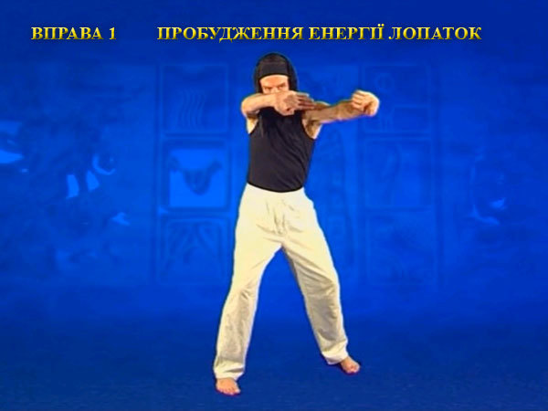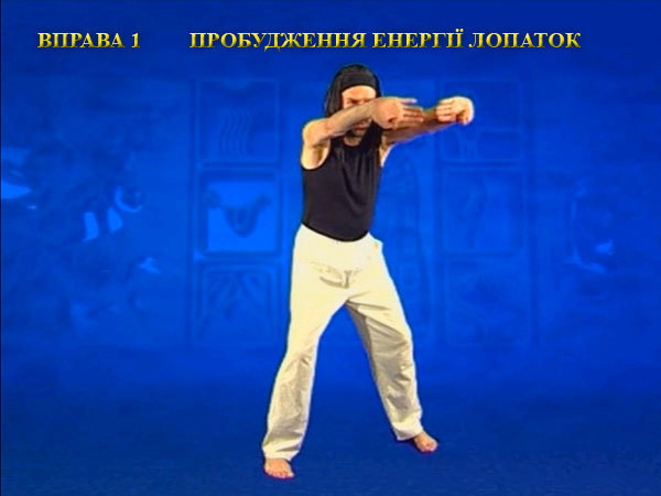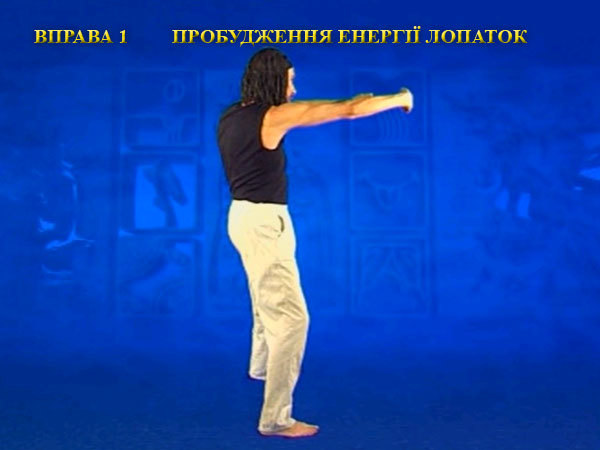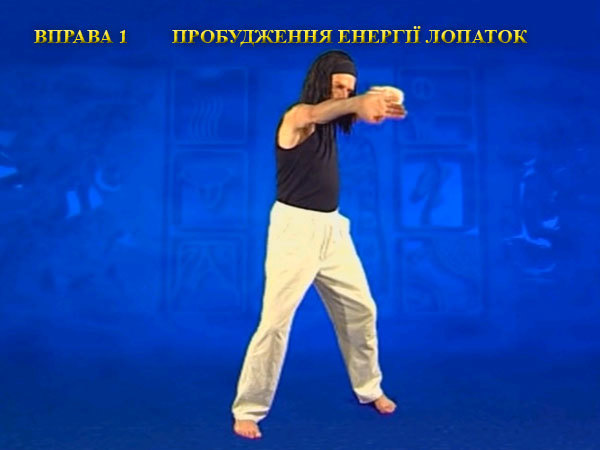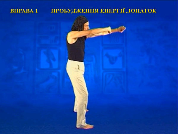 Перша вправа спрямована на пробудження енергії нервових вузлів, розташованих навколо лопаток. Ця енергія безпосередньо впливає на активність центру прийняття рішення, розташованого в районі яремної вирізки біля підстави шиї, де ключиці сходяться у вигляді латинської літери V. Пробудження цього центру дозволяє людині приймати рішення, відповідне її істинним устремлінням, подолати нерішучість породжену природним розсіянням енергії в ході повсякденного життя.