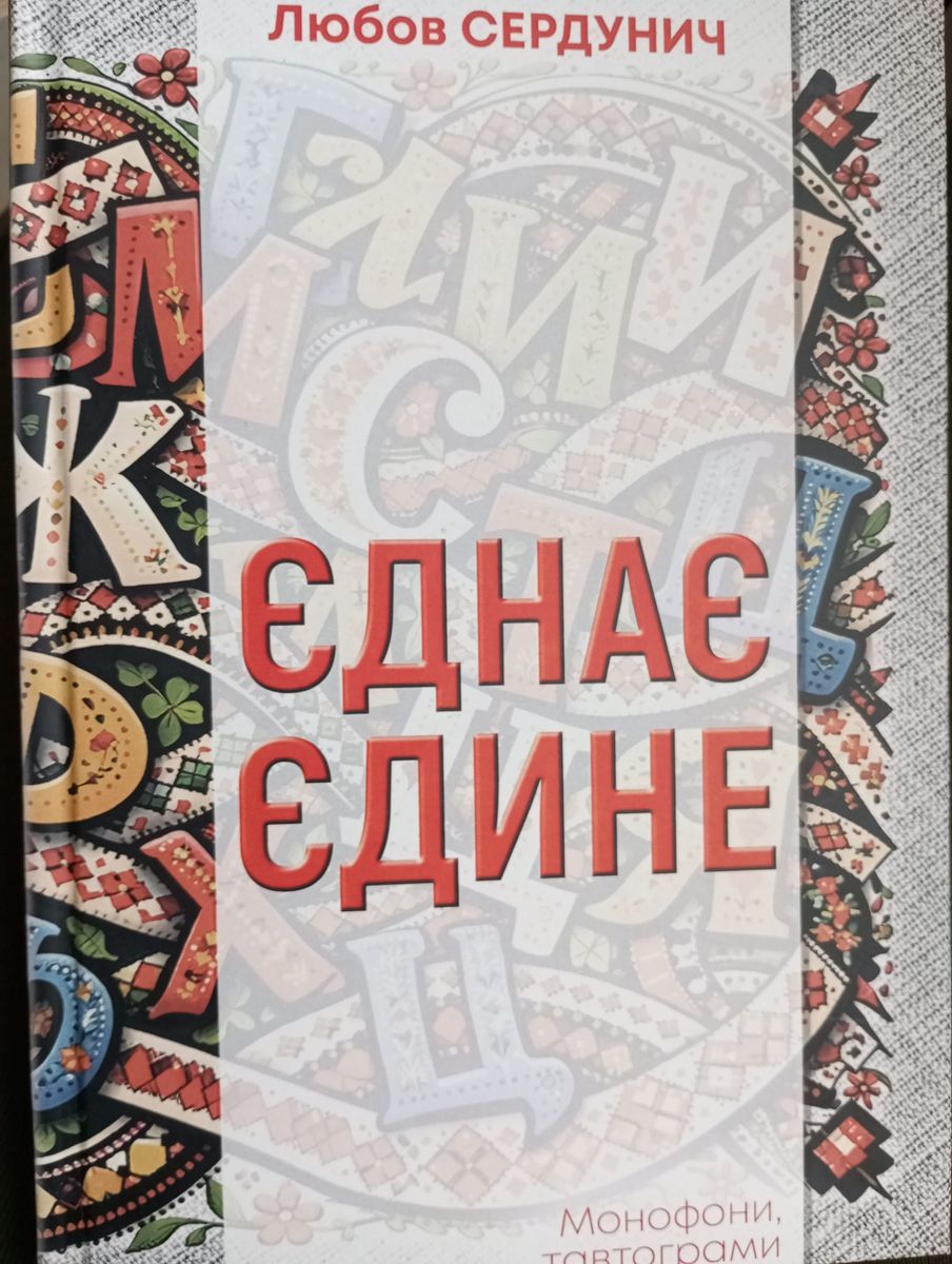 (Любов_Сердунич, збірка «ЄДНАЄ_ЄДИНЕ» (Монофони, тавтограми, алітерація. Поезія і проза_на_одну_букву). – Житомир: «Бук-Друк», 2025. – 180 с.: іл.; Харків: «Укр-Паблішер», 2025, 180 с.).