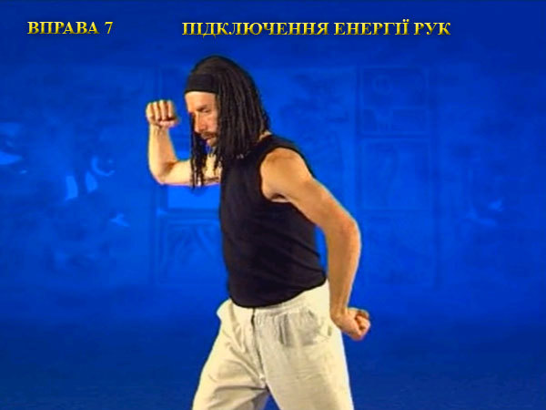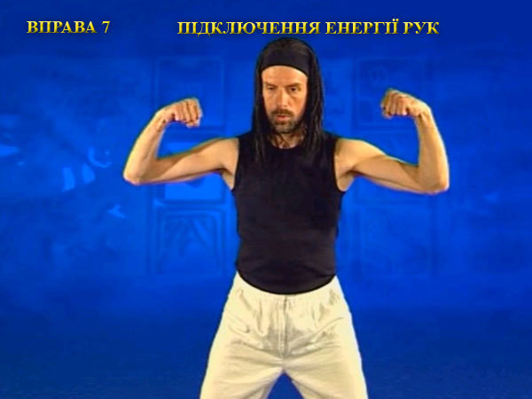 Сьома вправа максимально включає енергію сухожиль рук, спрямовуючи потік енергії до життєво важливих центрів тіла. Її дія відкриває енергетичні дії ліктів і зап’ясть, стимулюючи дихання кісткових тканин і оживляючи суглоби.