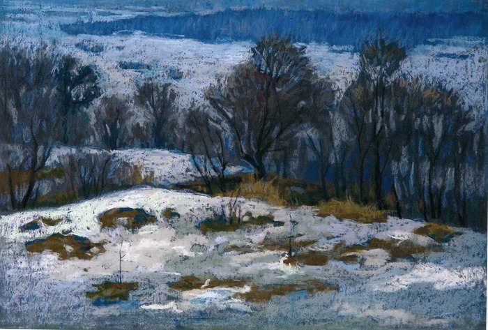 Цікавий момент… Краєвидам Петра Магро не властиве письмо відкритими кольорами, небагато яскравості, зате вбачаю використання стриманих, дещо приглушених барв… Але ці риси пейзажного живопису дніпровського художника не носять від’ємного характеру, навпаки – вони надають цим роботам ознаки своєрідності, несхожості на письмо інших митців, душевність та теплоту…