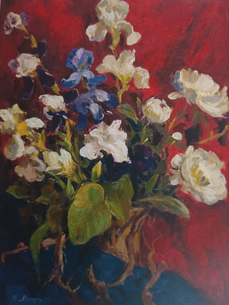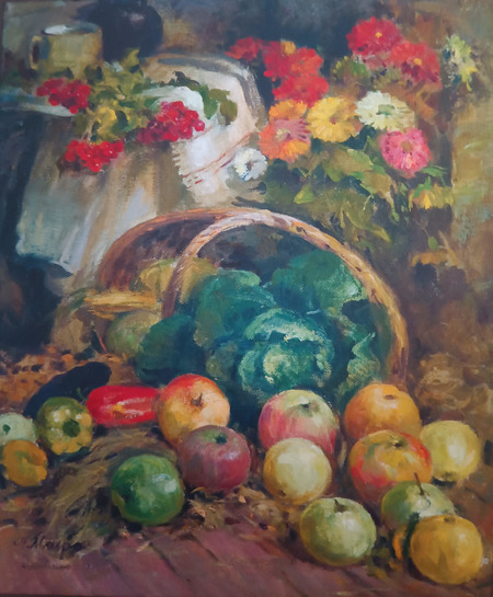 Не обійшов увагою відомий автор також жанр натюрморту. У перекладі з французької «nature morte» означає «мертва природа». Квіти: іриси, троянди, півонії; виноград, яблука, лимони, інші фрукти, якими багаті натюрморти живописця, аж ніяк не назвеш складниками «мертвої природи», бо написані роботи рукою Майстра…