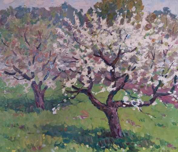 Обкладинка тексту - картина Петро Магро "Яблуні квітнуть"
